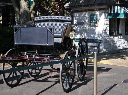 a marathon carriage and WEG poster, outside Keeneland’s main entrance for WEG Day