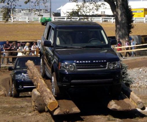 We also had to stop to watch part of the Land Rover “cross country course,” which had a long line of people waiting for the chance to drive through mud, over hills, along the side of a slope, and over this contraption: