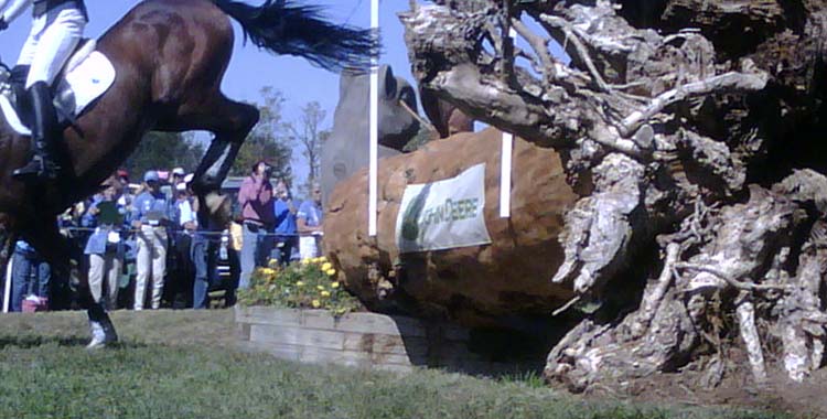 a rider approaching the tree jump …