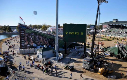 and, finally, while we were up there: a view of the Main Stadium with people arriving for this evening’s Jumping competition