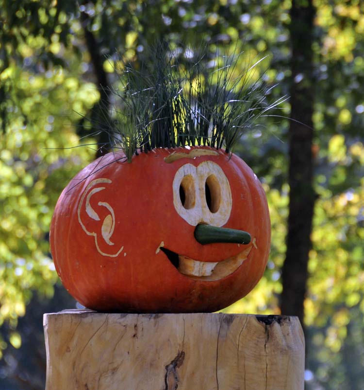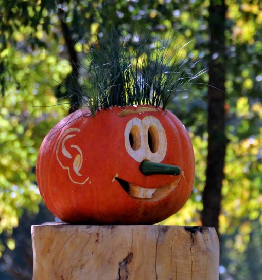 and a close-up of one of the Jack-o-Lanterns on the posts in this obstacle (he has hair!)