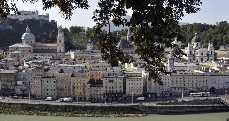 a portion of the Salzburg skyline, from the mountain across the river; you can see the castle in the upper left corner
