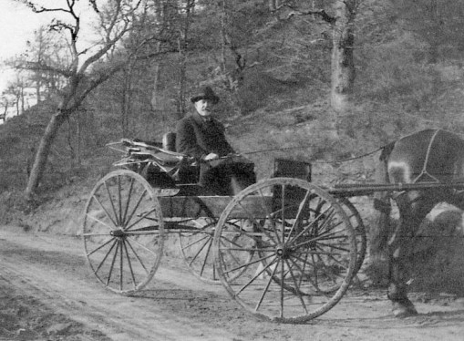 “This photo is of my maternal great grandfather, John William Lill, just above the town of Hood River, Oregon. It is not known if this was a rented turnout, or if he owned it, using it to travel from his home in Hood River to his couple of acres just outside of town, where he raised chickens. The photo is undated, but it most likely was taken sometime after 1900, but before 1916, when my mother was born.”