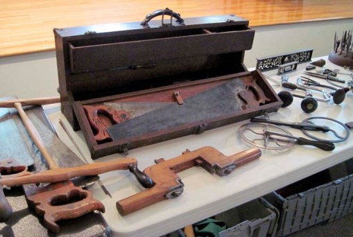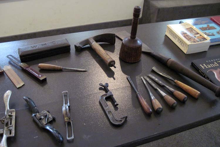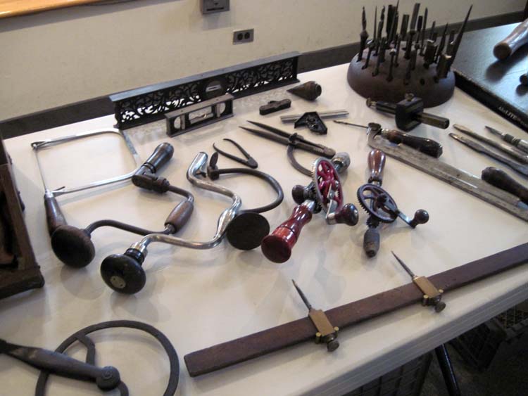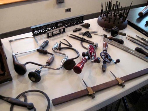 This past Sunday (October 16), the Long Island Museum of Art, History and Carriages at Stony Brook (New York) hosted a lecture by Jamie Swan of Northport. Mr. Swan is a fourth-generation craftsman, and many of the tools in his collection are family heirlooms. He filled four tables, end to end, with all sorts of tools for everything from carriage-building and cabinet-making to ship-building.