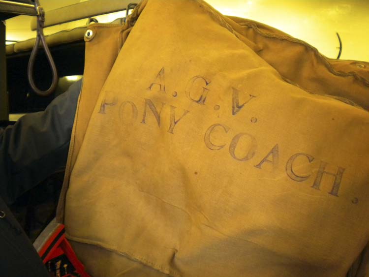 This coach was built in the style of a Park Drag, but sometime during its lifetime was converted to the brighter colors and the look of a Road Coach. It was built to be pulled by a team of Hackney ponies, so it’s three-quarters the size of regular coach.
