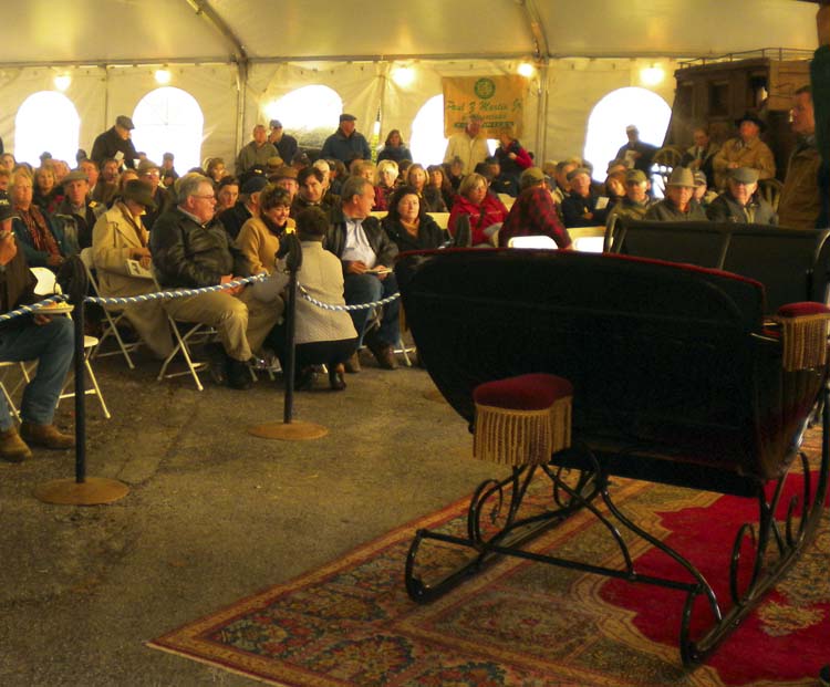 On Saturday, a carriage auction drew hundreds of visitors — carriage drivers, carriage collectors, and the merely curious — to the farm formerly owned by Elizabeth Lampton, just a couple of miles from the Kentucky Horse Park.
