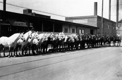 And the horsepower that pulled all those ice wagons? I assume that these are the horses in question, as this photo looks like it came from the same collection as yesterday’s ice wagons.