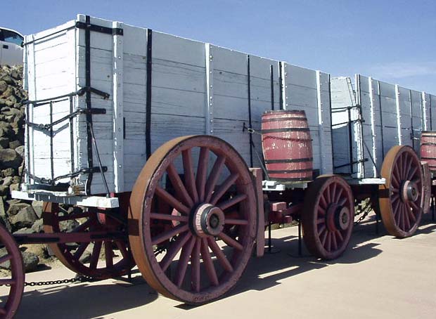 From 1883 to 1888, each twenty-mule team (pulling two loaded wagons and a water tank) took ten days (round trip) to travel from the Death Valley mine to the nearest railroad junction in Mojave. Each team carried about twenty tons of borax per trip, and the teams delivered more than 10,000 tons of borax during their years of operation.