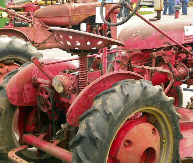 Yesterday was the Fayette County Farm Bureau’s annual farm-equipment auction, here at the Kentucky Horse Park. I must admit that I love looking at antique tractors, so I walked over on Friday afternoon to wander through row after row of tractors, manure spreaders, and all sorts of (for me) mostly unidentifiable farm equipment, all laid out in a far corner of the Park’s parking lot for Friday’s inspection and Saturday’s auction.