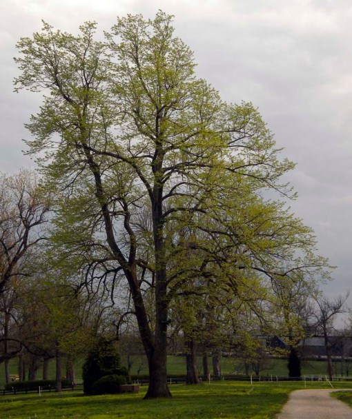 And, just for good measure, here’s a Horse Park tree near the steeplechase course, just starting to turn green. In a little more than a month, this tree and its compatriots will be in full-green summer mode, and this entire space will be filled with people enjoying thecross-country portion of the Rolex Kentucky Three Day Event.