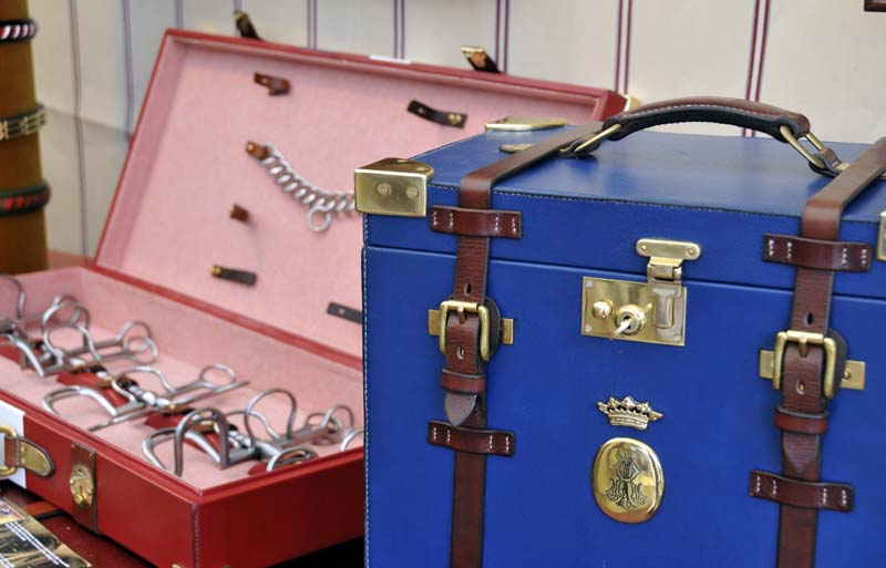 I enjoyed seeing (and was able to introduce A.J. to) some friends from Spain, when we discovered the Dorantes Saddlery booth. During last year’s CAA trip to Spain, the group had visited with the folks at Dorantes, and with their compatriots at Alba Carriages. At Windsor, we talked about England, Spain, food, and, of course, the beautiful items on display in their trade-fair booth.