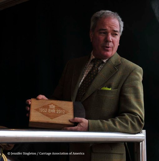 Mr. Stevenson showing the box that sits in a secret compartment in the rocking horse and contains nine photos of HM The Queen