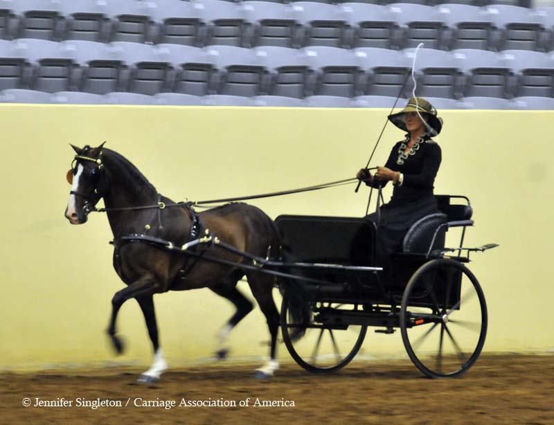 Jennifer Keeler driving her rescued Hackney pony, Harpo