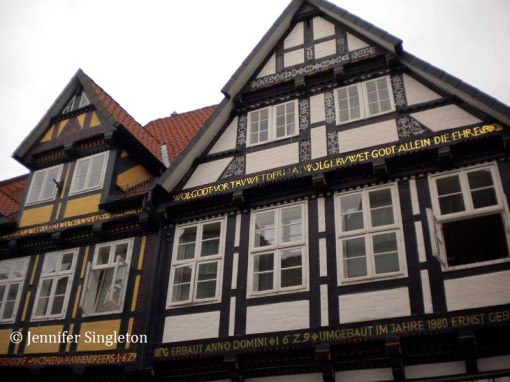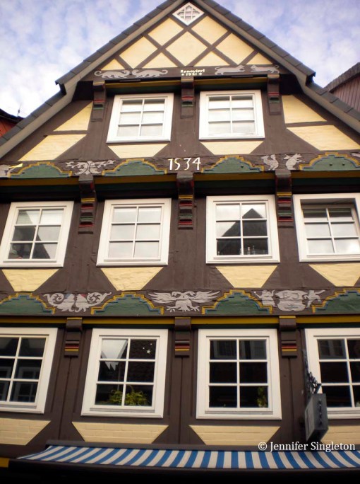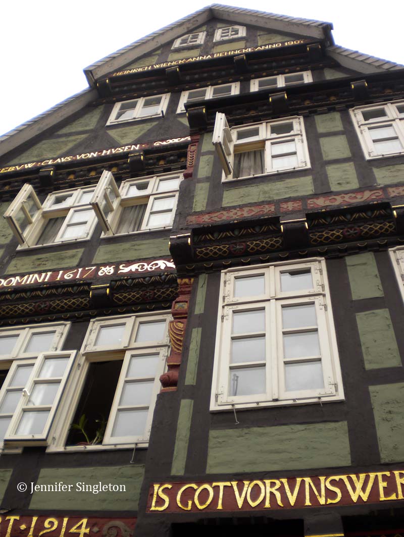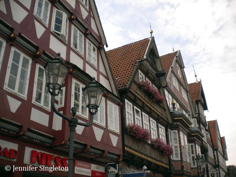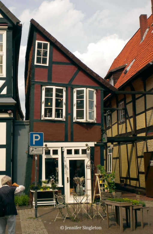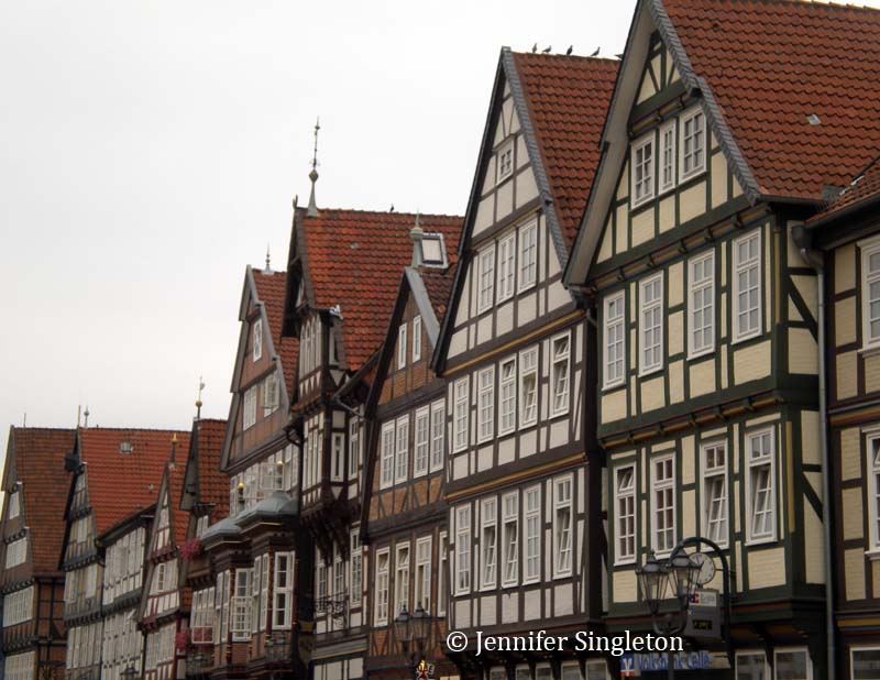 The city of Celle has a remarkably well-preserved and vibrant city center, filled with hundreds of buildings built between the sixteenth and eighteenth centuries. It may be difficult to see in some of these photos where I’ve used a wide-angle lens and skewed the perspective, but a lot of these buildings are really uneven — with door frames, floors, and window frames at odd angles to each other — after several centuries of settling.