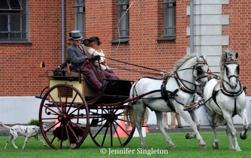 I saw some horse-show photos yesterday … I think they were probably from the very early twentieth century. In one, as a test of the driver’s skill, a turnout was driving between two chairs. Percursors to our modern cones competitions, perhaps?
