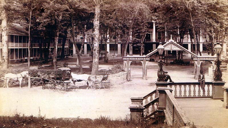 While in town, I found these wonderful postcards, with photos from the 1880s (the original photographs were found and reproduced by the owner of the local Bird’s Nest Farm). The photos show nearby Bedford Springs, which has been a resort since the early nineteenth century.