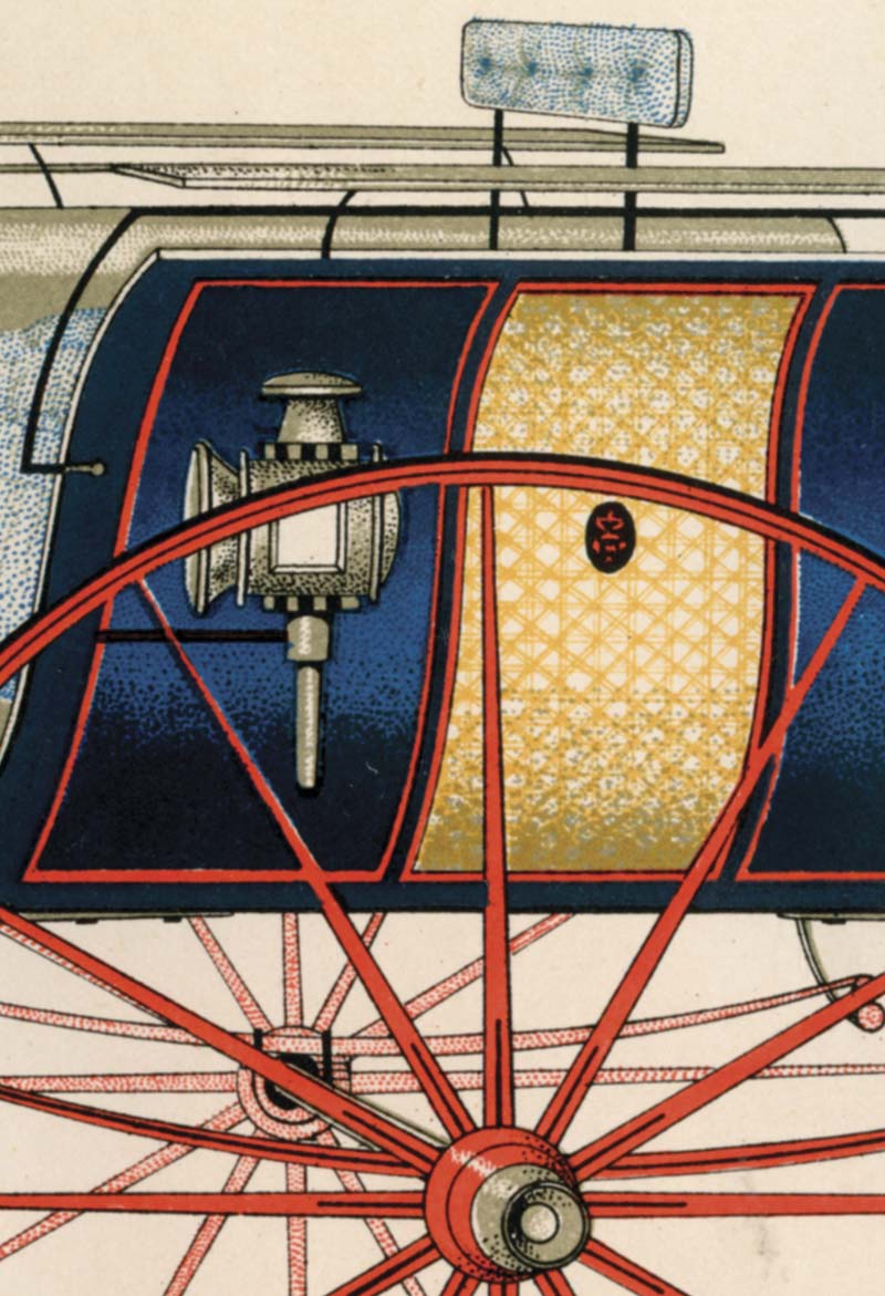 Today, Mindy (who’s in charge of the CMA’s Library & Archives, here in our office) found an 1898 print of a beautiful and colorful vehicle, which we’ll be featuring on the cover. I don’t want to spoil the surprise, but here’s a snippet: