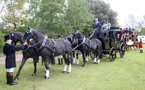 I now have a bunch of photos from the CAA group’s visit to this year’s Royal Windsor Horse Show. In the three photos below, I believe the first one is of Mark Broadbent, who won the Coaching Championship and the Jack Pemberton Trophy for being the best turned out. The second and third photos are of U.S. drivers: Jim Fairclough and Misdee Wrigley Miller, respectively. It looks like they had perfect weather for the event (unlike last year, when the ground was so muddy from the previous days’ heavy rains that the coaching was canceled!).