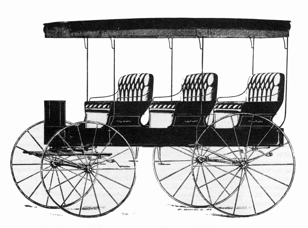 “This three-seat Platform Wagon or Platform-spring Wagon was called a Summer Resort Wagon by the manufacturer, giving some indication of the uses to which it was put. It was offered with a black body on a red or dark green gear, and imitation leather trimming, for $77.”