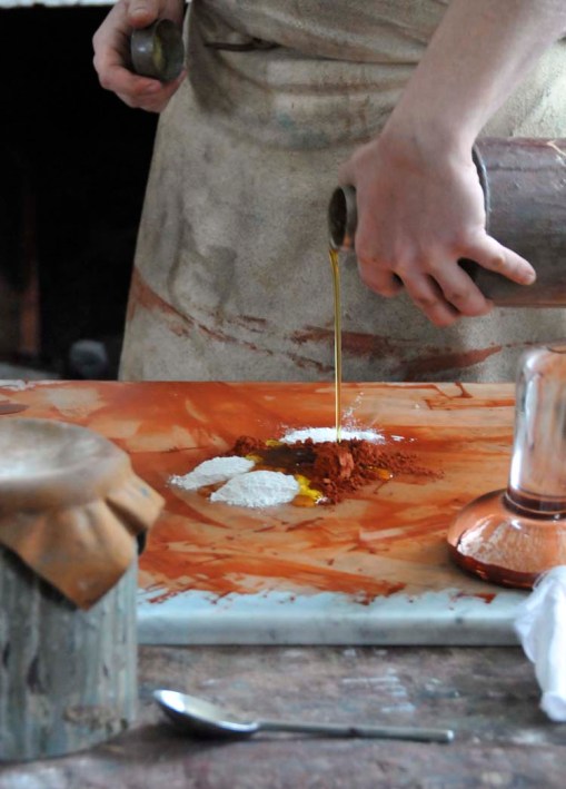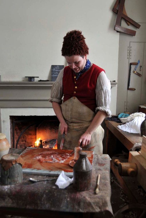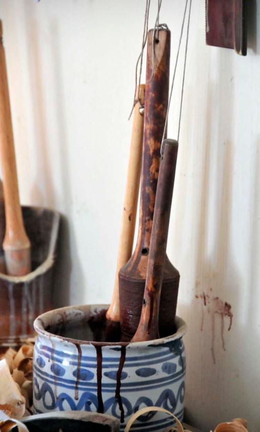 If you have a FB account, you can follow the link on this blog to our FB page. While you’re there, search for “The Deane Shop” to find the wheelwrights’ page and become a fan of them as well. I’ve uploaded to their fan-photos page the photos you saw here yesterday, plus a few others. They tell me that they’ll be grinding paint tomorrow afternoon, so I’ll be there to get photos of that as well.