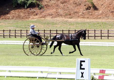 I was able to have a brief chat with Robin Groves and Donna Crookston in the Wine Bar, a tent located at the end of the dressage arena near A. We talked about the marathon tomorrow, and they agreed with a comment Bob Koopman made yesterday that most of the hazards are very open BUT they have tricks in them. There are forty-two knockdowns total, so the drivers cannot just go barreling through the obstacles. Obstacle 3 has a lot of changes in elevation and looks the trickiest to drive. There are two water obstacles; one has a bridge and A is gated so that a competitor has a choice of going either over a long bridge or down a slope and through the water to B. Will report on thrills and spills tomorrow!