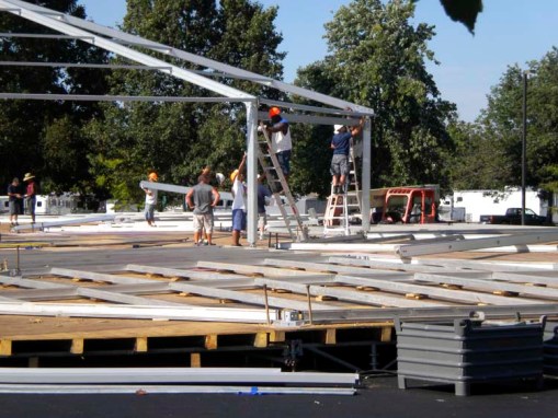 All the vendors were unloading and setting up today. I unloaded and set up the book stands and tables, but did not get any of the books out of the plastic tubs because of the weather.