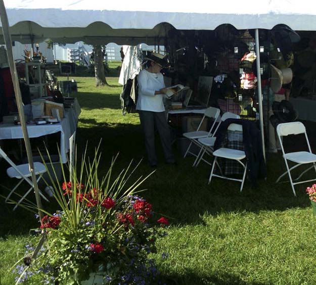 While on my way to Walnut Hill (in a rental vehicle with a lot of CAA stuff for the booth), I received a phone call from a friend telling me that it was pouring down in Pittsford. So I expected not to be able to drive up to my booth upon my arrival due to the wet grass, but we all were able to (thank goodness — so we didn’t have to carry heavy boxes a long way). I understand the stabling area is quite muddy due to the large number of motor vehicles coming and going.