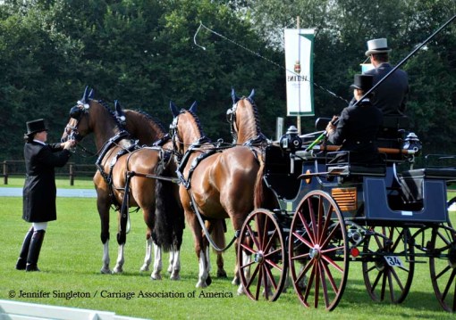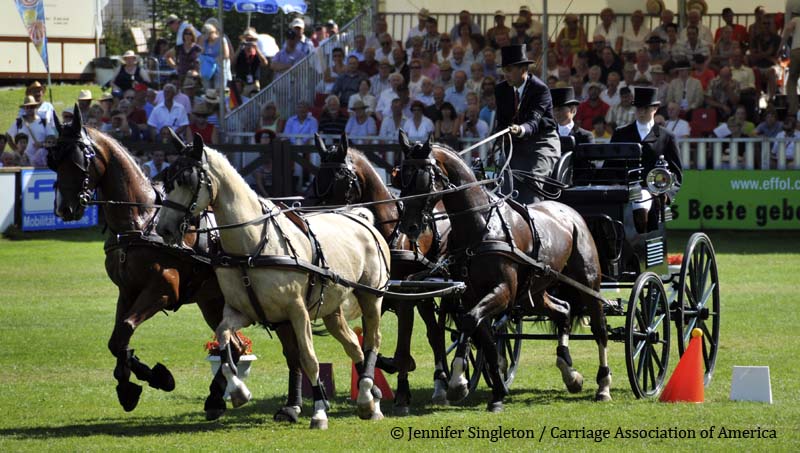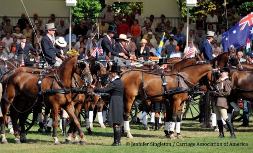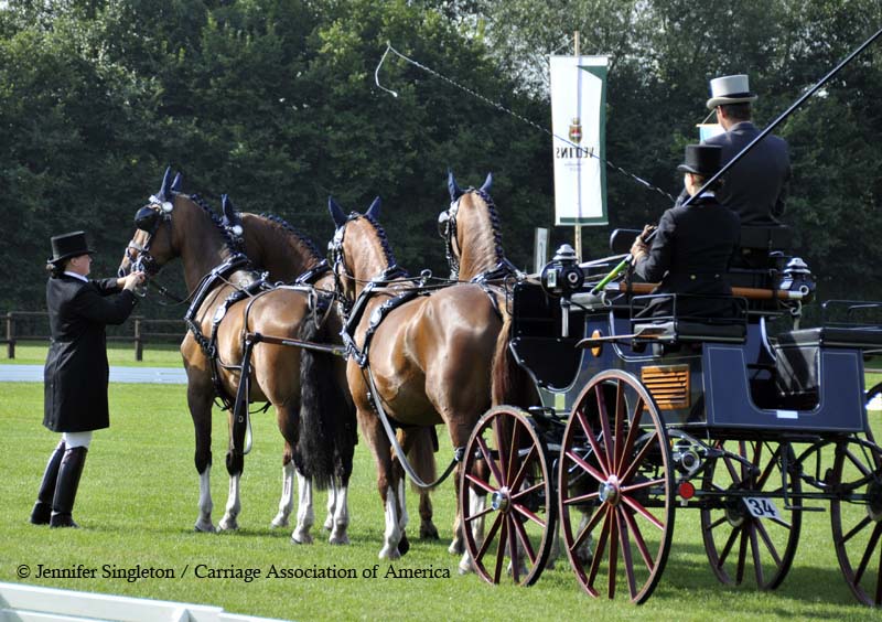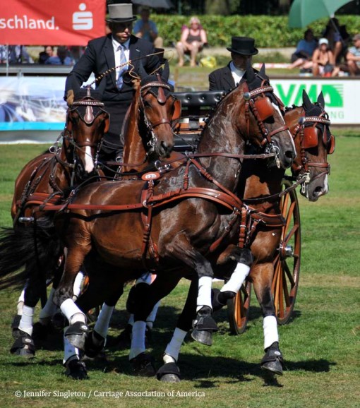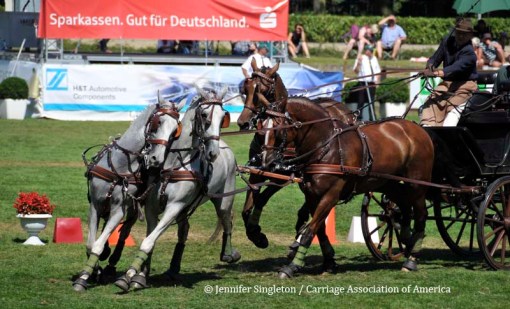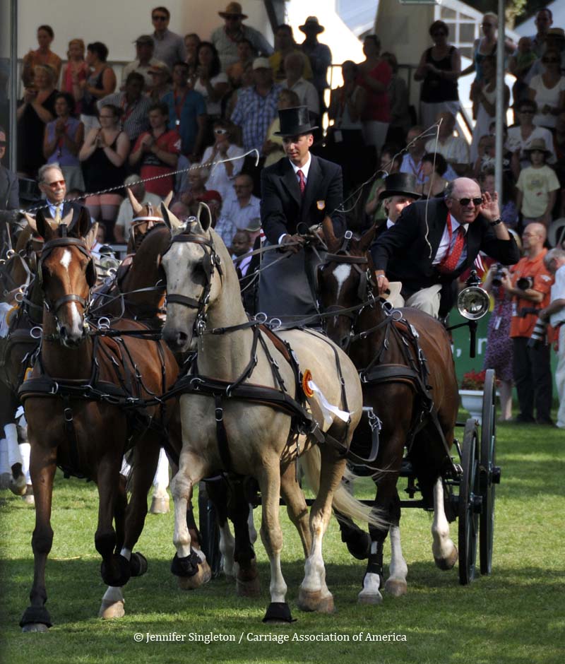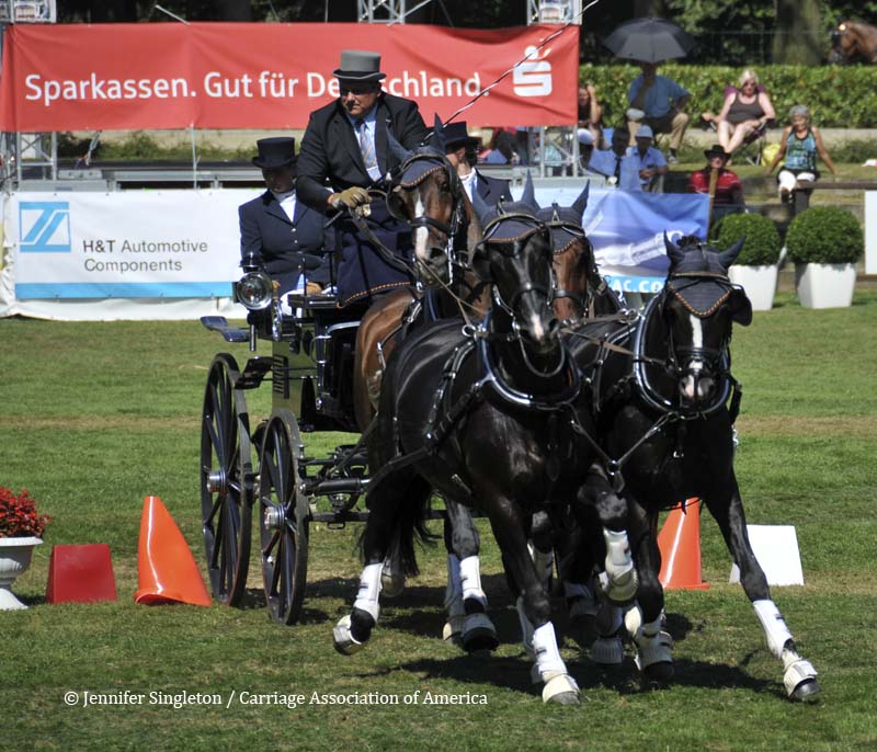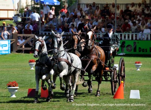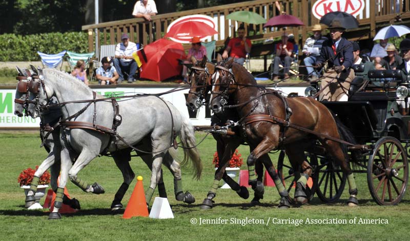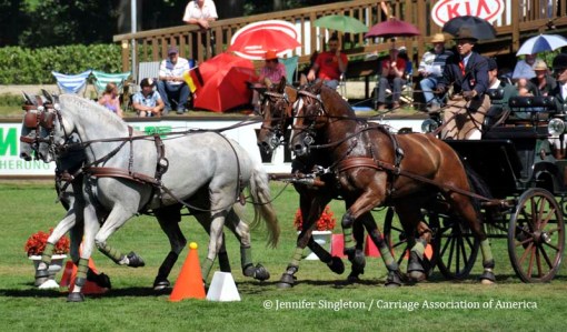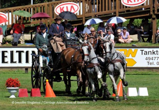 Here are some views of the cones competition … first, two of the U.S. drivers and then each of the Top Nine (I meant to get photos of all the Top Ten drivers, but missed Belgium’s Gert Schrijvers, who was standing in tenth place after the dressage and marathon phases). They’re all shown in the order in which they drove.