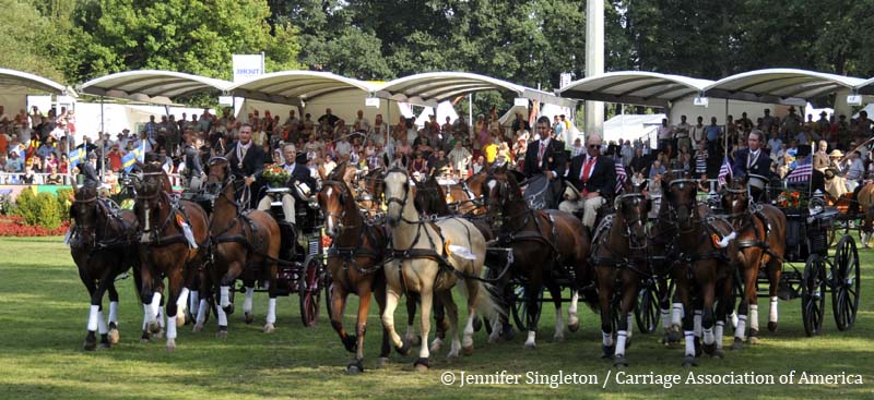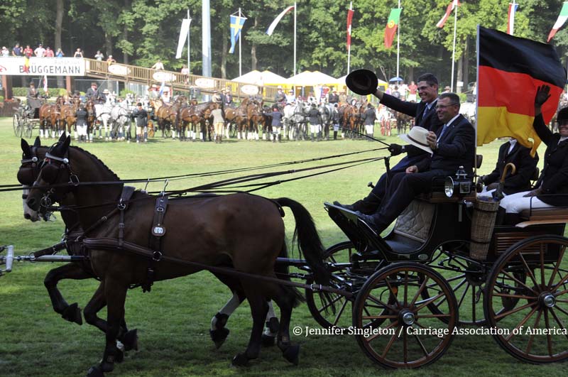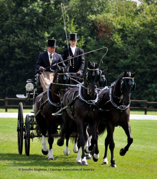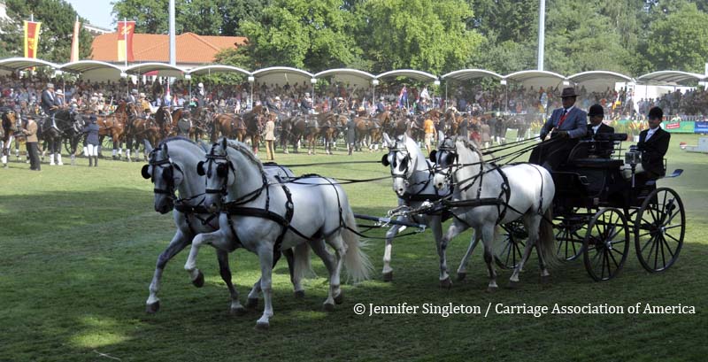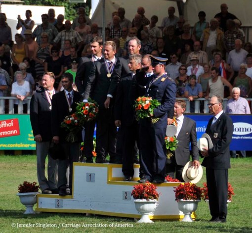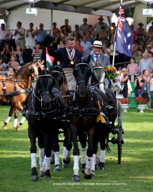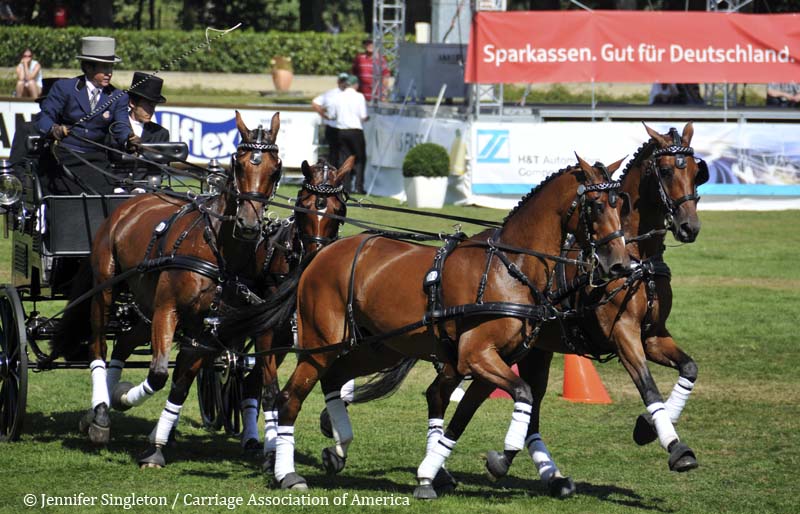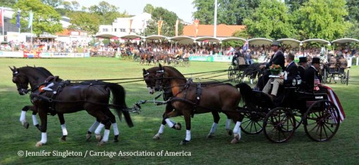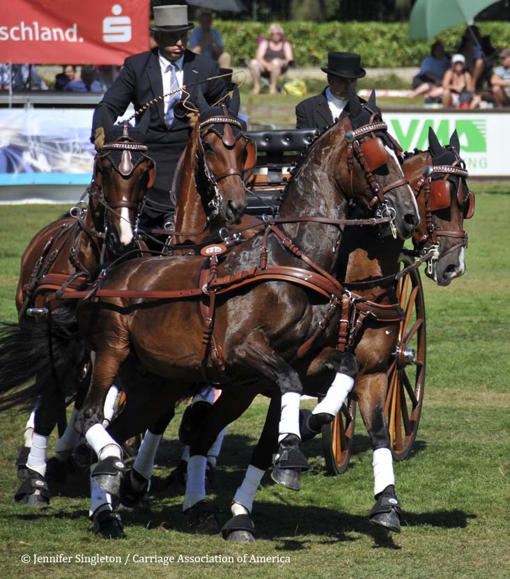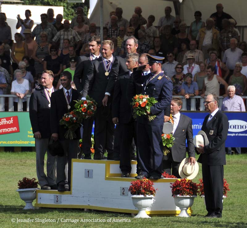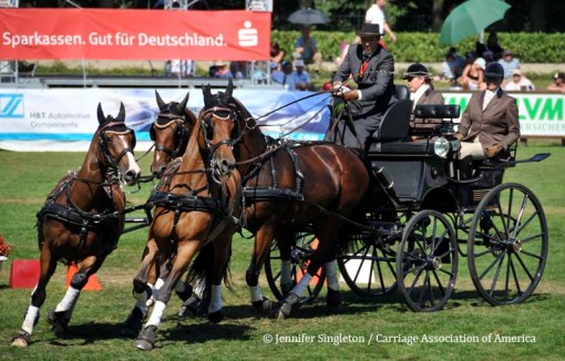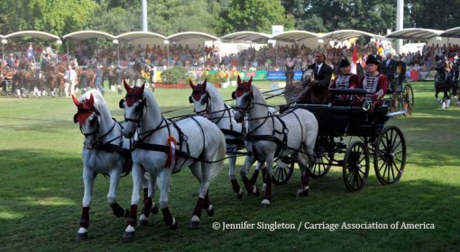 Here are some views of the cones competition … first, two of the U.S. drivers and then each of the Top Nine (I meant to get photos of all the Top Ten drivers, but missed Belgium’s Gert Schrijvers, who was standing in tenth place after the dressage and marathon phases). They’re all shown in the order in which they drove.