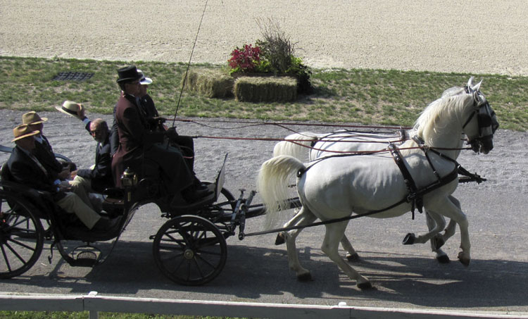 As Wendy previously reported, the Lipica Stud is a unique place. Everything seems to be well organized, and it is particularly refreshing to have the championship venue at a location that has an existing equine infrastructure. The comments from drivers and grooms are positive. In addition to the competitors, grooms, and helpers, there is a strong contingent of U.S. spectators.