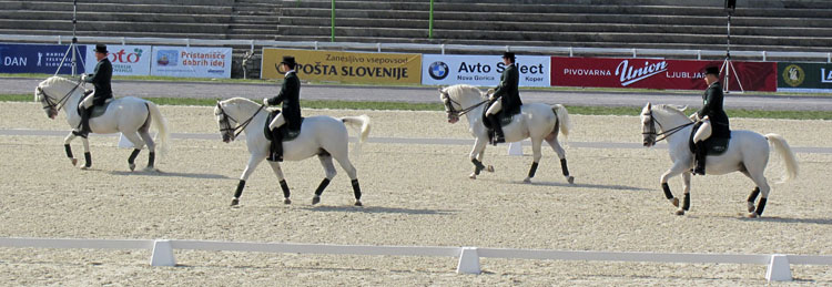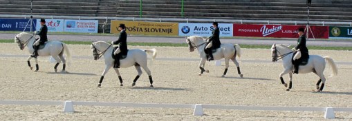 The parade was followed by a few speeches and then by an interesting quadrille dressage demonstration by four Lipica Stud Lipizzaner stallions.