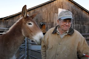 Bob Sawyers — on his farm with one of his prize-winning mules — has lived his whole life in Decide, which is on Ky. 1281, also known as Willis Creek Road (photo by Charles Bertram)