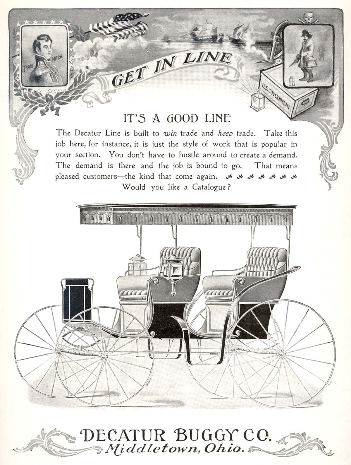The advertisements were endorsed as being a service to the dealers, in that they could use each issue as a catalog of sorts in their shops. What should you do if a customer is about to leave without making a purchase? Here’s the suggestion put forth in Vol. 1 No. 1: “When it comes time for the visitor to walk out, after he has looked all over the stock and sees nothing to take his eye, the dealer has one card to play. Let him invite the outgoing, would-be buyer to his office, ask him to take a seat, lay down before him The Vehicle Dealer, open its advertising pages to him and say ‘Now, my friend, look over these 100 pages of carriage illustrations. They represent the latest and best makes of vehicles from all over the United States. Here, my friend, is the greatest carriage repository the world ever saw. Go through it page by page. Look at the description of each display, note the style, appearance, the good points. Turn on, page by page, and you will probably find what you want. If it is not there, it is not made.'” In 1905, the Vehicle Dealer even published a special supplement to the regular journal, the Manufacturers’ Vehicle Cyclopedia for New Styles. It left out the articles altogether, including instead a whole book of advertisements featuring new vehicle styles.