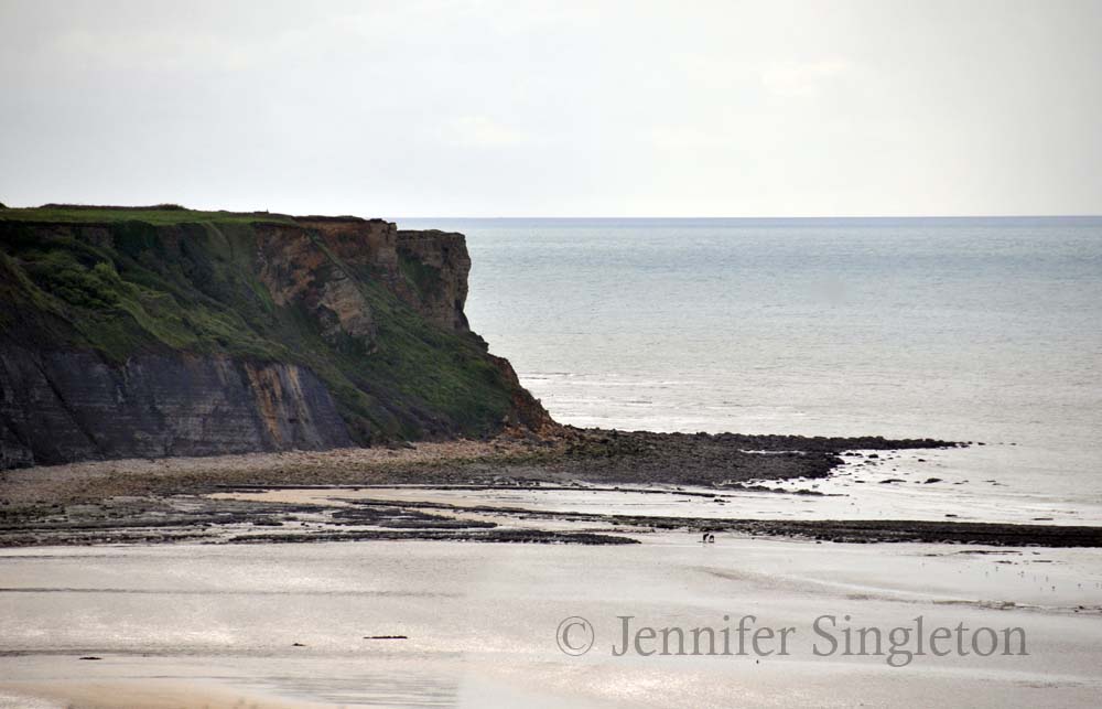 This is rather off topic, but I thought I would share another then-and-now set of photos from our recent trip. While we were in Normandy, we visited several of the D-Day sites, memorials, cemeteries, etc. One of these was Omaha Beach. I understand that one of the things that made June 6th, 1944, so incredibly difficult for the American soldiers landing on that beach was, in fact, the beach itself … it’s incredibly wide and flat and completely without cover from the gunfire that rained down on them. Those same features, especially if one is visiting on a cool, gray day when hardly anyone else is there, now make the beach a remarkably beautiful, peaceful place.