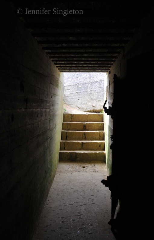 This photo, from the information plaque, shows a 1944 view of the same blockhouse we visited, from about the same vantage point.