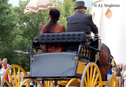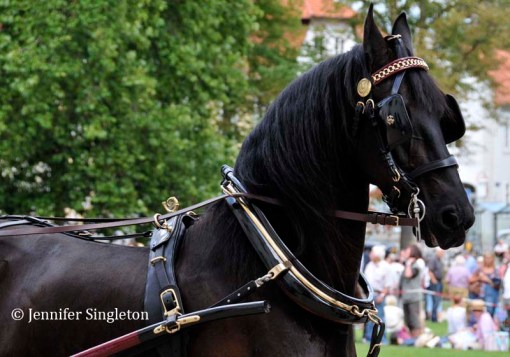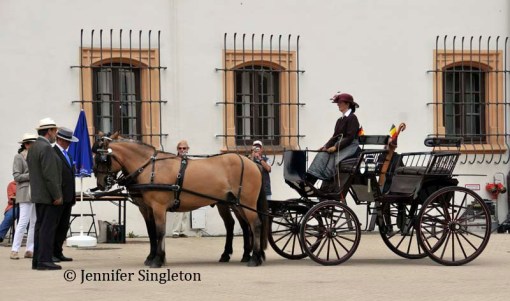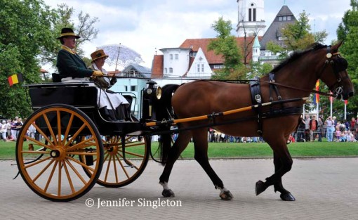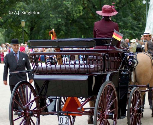 Hans-Jürgen Niemeyer, representing Germany, had his Friesians hitched to a Demi-mail Phaeton, c. 1890 (which, if I remember the announcer’s information correctly, was built in nearby Bremen, Germany):