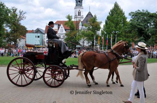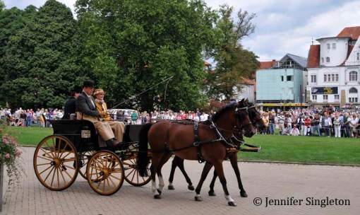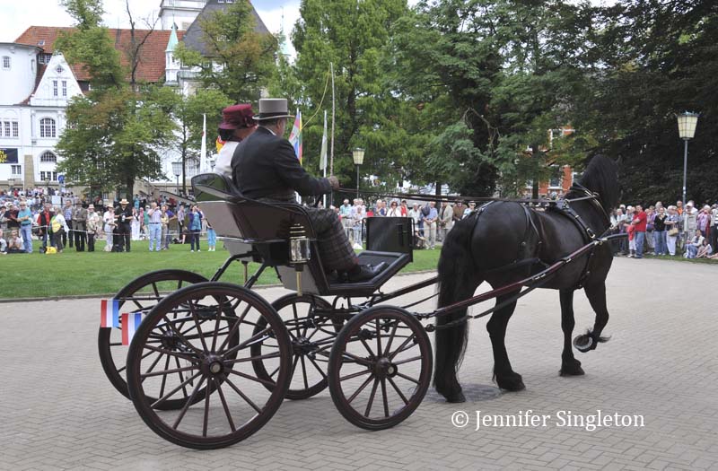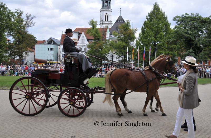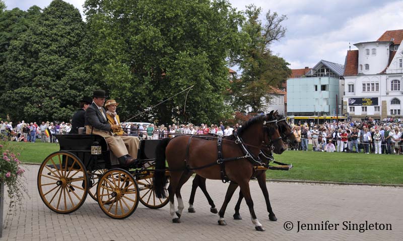 Heinrich Schumacher, representing the local Landgestüt Celle, drove a pair of the stud farm’s Hannoverian stallions:
