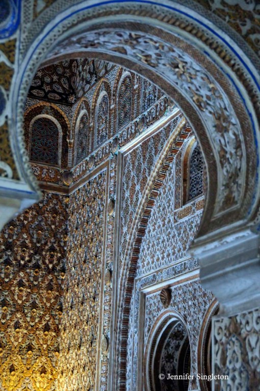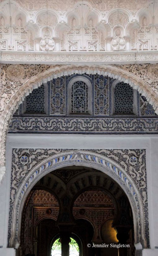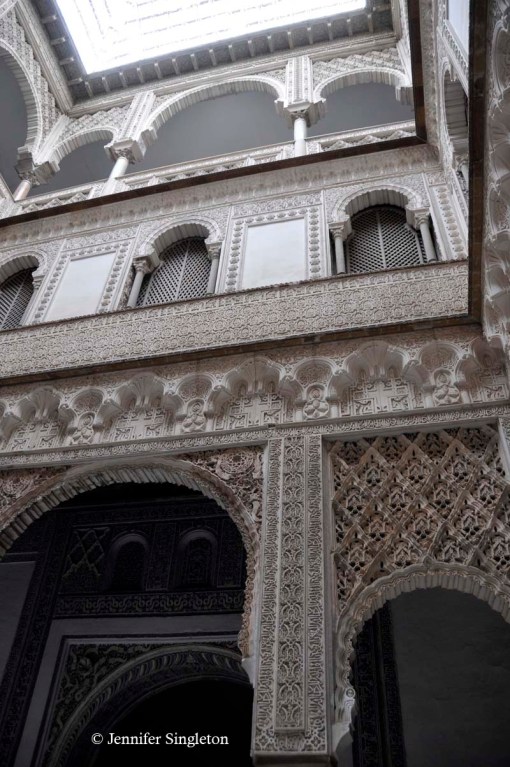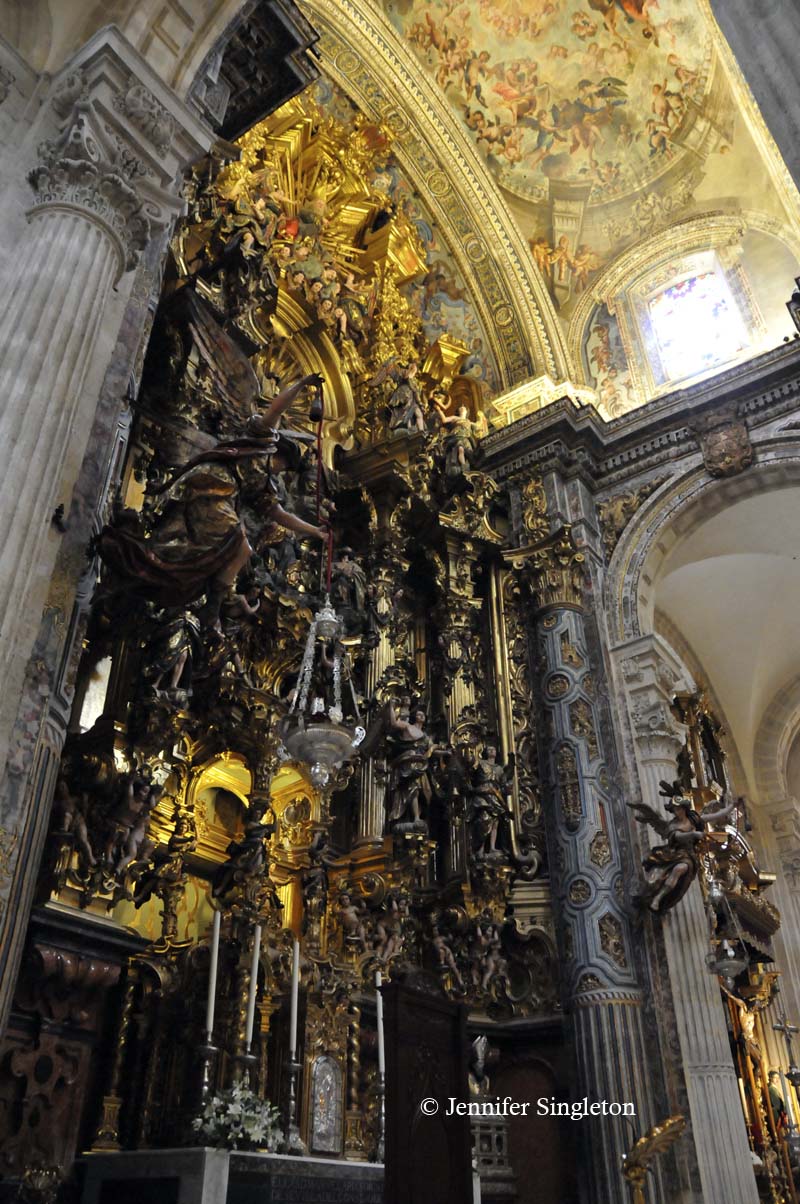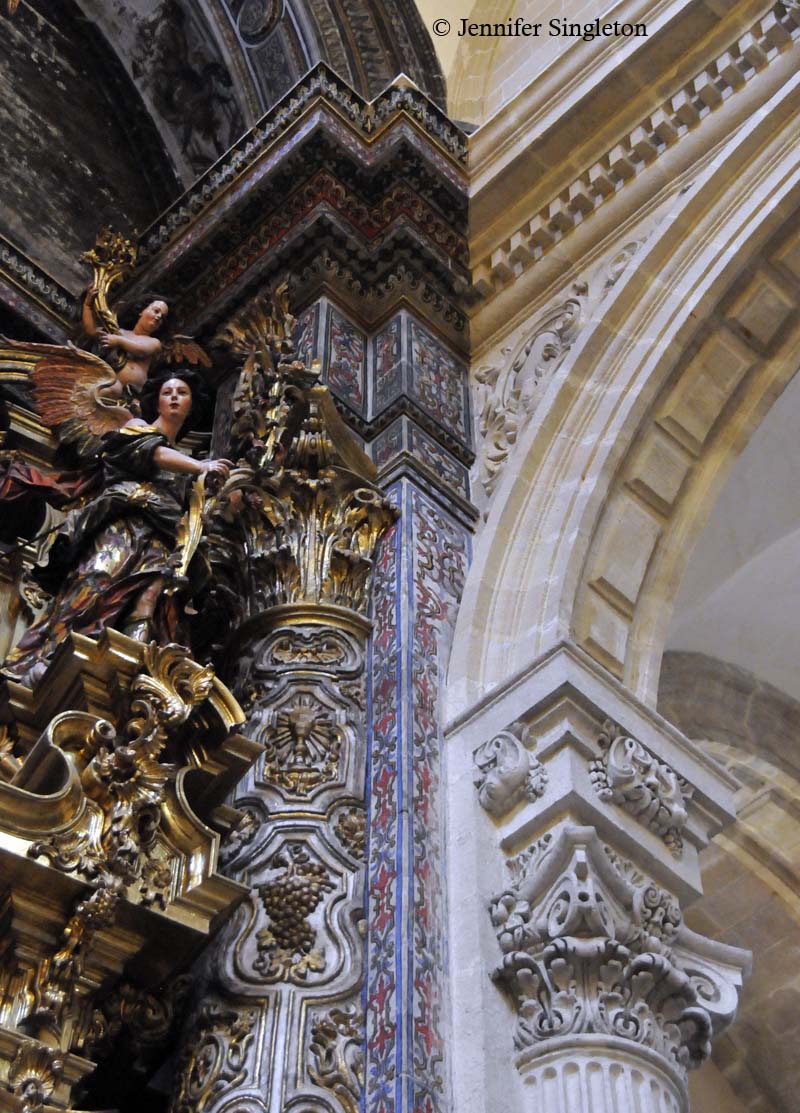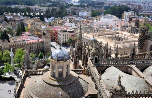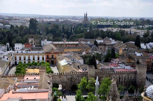 In this photo, the complex with the crenellated wall is the Real Alcázar, which we peered inside in yesterday’s post.