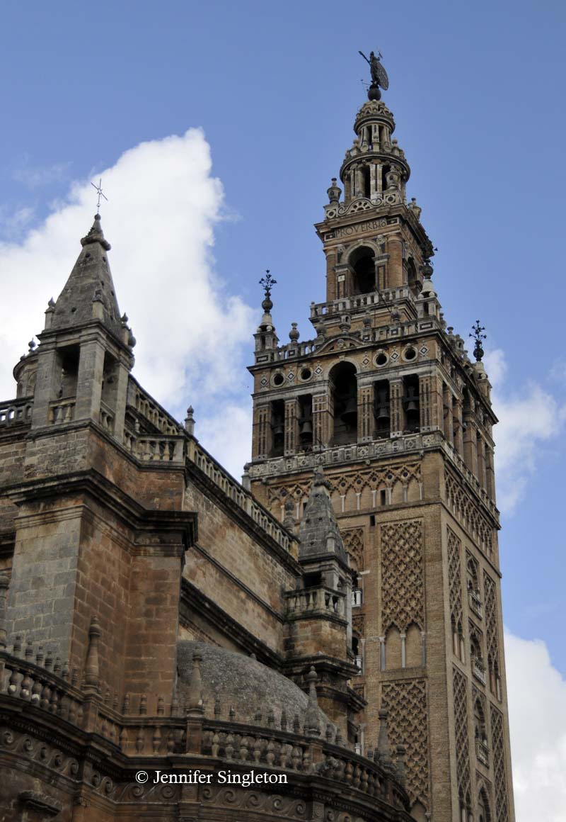 From among the many photos I took in Sevilla in 2010 here, first, is one of the Giralda and a bit of the city’s massive cathedral.