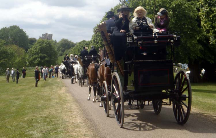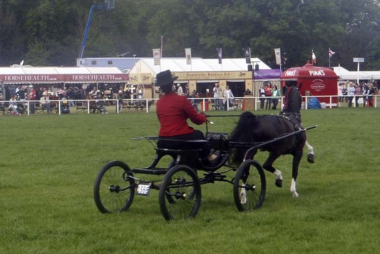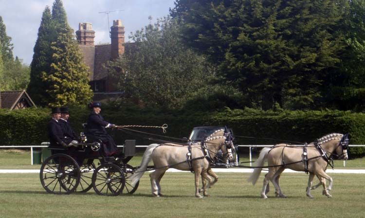Early on Thursday (8:30 a.m.), I led our group on a walking tour of the Royal Windsor Horse Show. This is a necessary thing, or you just do not get the lay of the land at this large show (three show arenas, plus the combined driving event). We walked about, and I showed them the areas where their tickets got them, and we worked our way to the dressage arena to see first the pony four-in-hands followed by the horse four-in-hands. Then everyone was left to pick and choose what they wanted to see; some watched the many hackney classes, the driven dressage, or the many other interesting and unusual (to us!) classes.