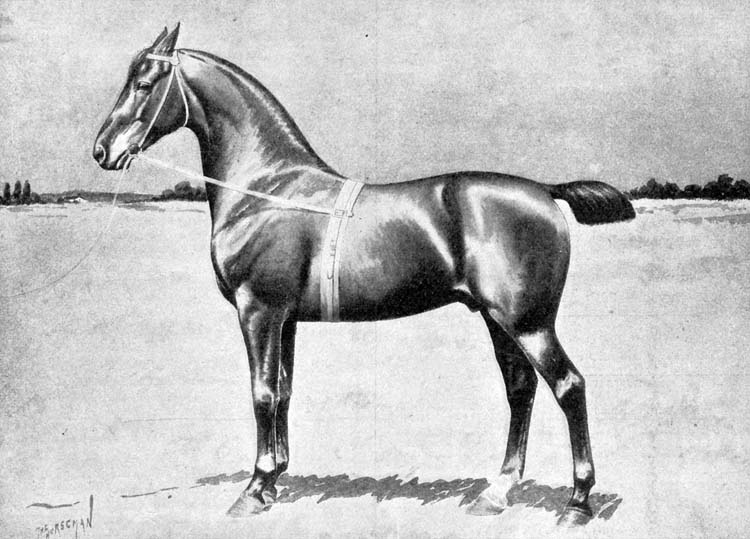 Partisian, 3 years old. Bred at Oaklawn. Got by Perfection (sire of some of the mares purchased by Mr. F. C. Stevens, for Maplewood stud, to cross with his famous Hackneys) out of imported Tranquille. Winner of first prize in the three-year-old class at the New York Horse Show, 1896 (from the April 17, 1897, Rider and Driver)